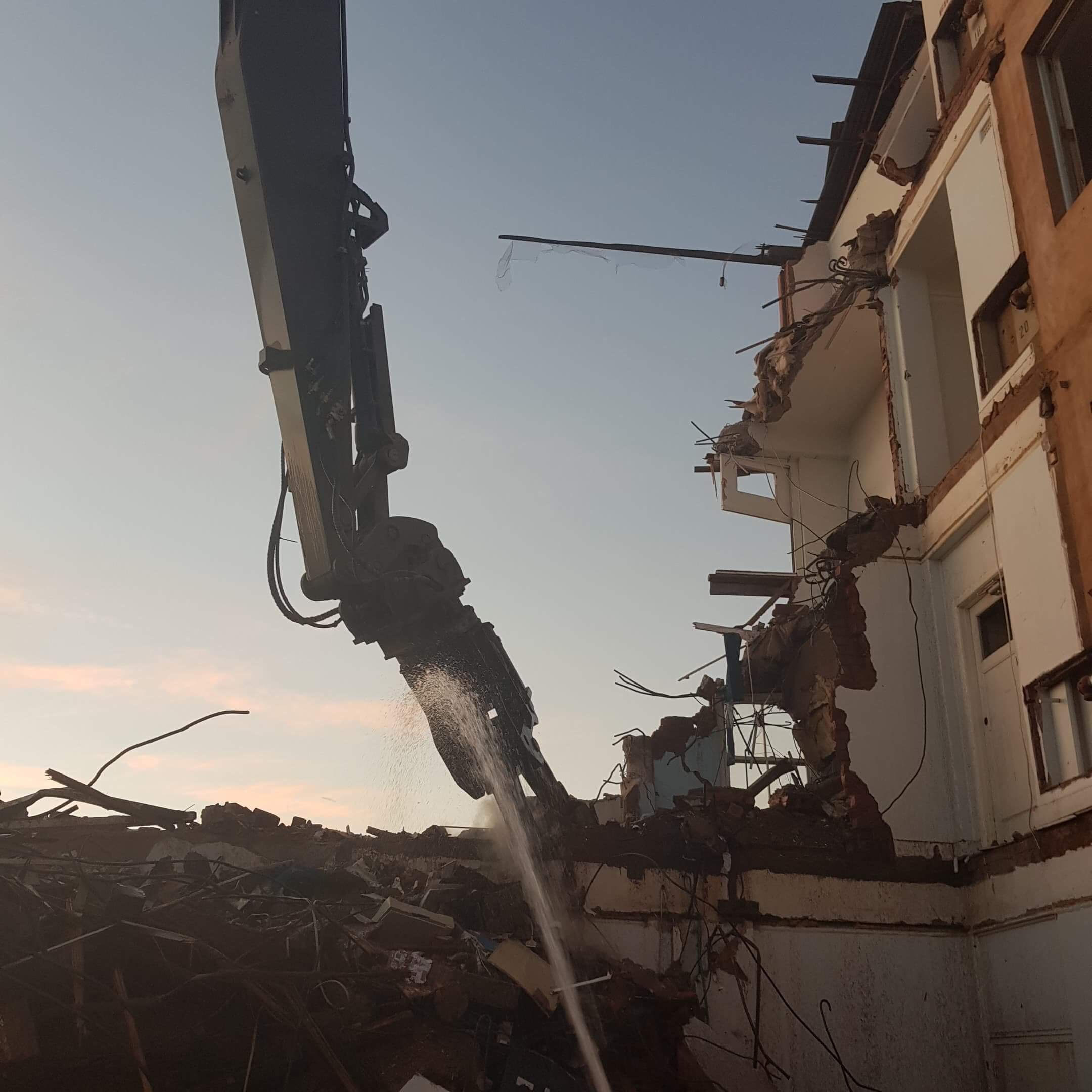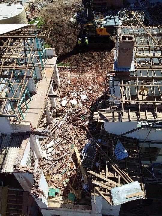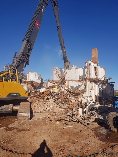Demolition consisted of three separate wings of the Hospital, removal of all associated footings and landscape, leaving the site clear for future works. Two excavators were floated to site to allow for simultaneous demolition to permit for a strict program.